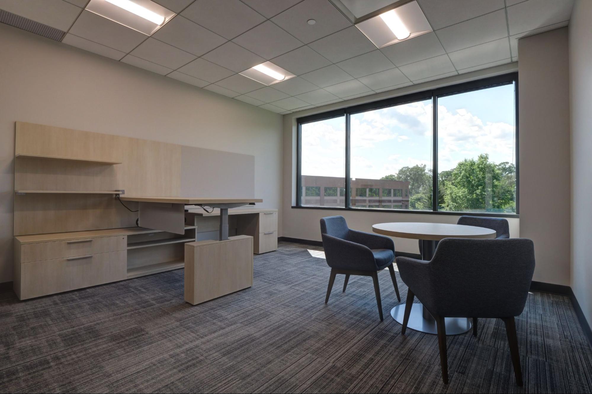 Meeting rooms became central hubs for team alignment and client conversations. They were anchored with Bernhardt and Herman Miller Headway conference tables that conveyed confidence and stability, complemented by seating from MillerKnoll, Hay, JSI, Bernhardt , National and Carolina that offered comfort and understated elegance. Each space was thoughtfully arranged to support the serious, high-trust nature of financial advisory work.